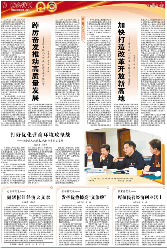 3月9日出版的《经济日报》,在第9版刊登了全国人大代表、河南省委书记刘宁的专访文章《踔厉奋发推动高质量发展》。
